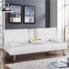 – Sturdy Construction, Solid Materials Founded atop metal legs in chrome finish, this convertible sofa bed features an engineered wood frame, foam fill, and soft faux leather upholstery that s easy to clean. Maximum weight capacity up to 772 lb.