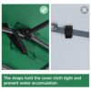 This robust tent is crafted from hard-wearing polyester fabric, reinforced with a UPF 50+ coating and a water-resistant PU coating, ensuring optimal protection against the elements. Supported by a sturdy powder-coated steel frame and trusses, featuring telescopic legs, this pop-up canopy allows for effortless and smooth height adjustment, ranging from 10.4 to 11 in 4 increments. Moreover, this canopy set includes all the essentials for a hassle-free and safe outdoor experience: a spacious 15ft × 10ft canopy tent, a convenient roller storage bag, 4 guy lines, 8 metal ground anchors, and 4 sandbags. With its comprehensive range of accessories, you can rest assured that your shelter will be both secure and comfortable.