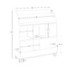 - Three square cubbies, two spacious storage compartments, and a three-slot bookrack on top