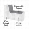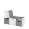 RiverRidge Kids Reading Nook Cushioned Toy Storage Bench with Cubby Organizers and 2 Gray Fabric Bins- White