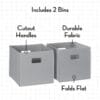- Items Included: Bench, 2 fabric folding bins, 2 Gray Bins