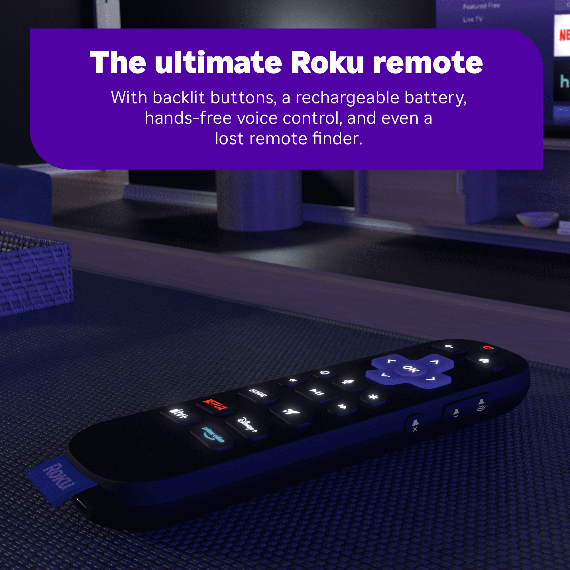 - The ultimate Roku remote: The rechargeable Roku Voice Remote Pro offers backlit buttons, hands-free voice controls, and a lost remote finder.
