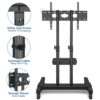 – TV floor trolley stand with adjustable poles that can be set at a height of between 50 to 72 inches, providing versatility and convenience for different viewing scenarios.