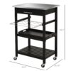 – Constructed of durable tabletop and high-quality pine wood, this serving cart has a strong contrast with the rich black finish seamlessly. This kitchen island cart is designed for longevity.