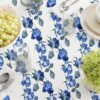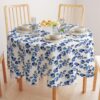Round Tablecloth, 100% Polyester, 60 Round, Blue Watercolor Roses