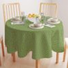 Round Tablecloth, 100% Polyester, 60 Round, Intertwined Green Wicker