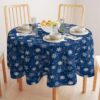 Round Tablecloth, 100% Polyester, 60 Round, Winter Blue Snowflakes