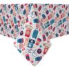 90 Round Tabelcloth (size is of tablecloth not table). Made Domestically, Polyester. Merrowed Edges. Seamless cloth. Machine Washable with Light Iron touch up as needed. Will soften after each wash. Engineered to resist stain absorption. Perfect for all occasions!