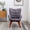 Button-tufted accents make the Leiria Contemporary Silky Velvet Tufted Accent Chair with Ottoman. Tapering wood dowel legs add mid-century flair. Settle into the generous wingback design to appreciate this chair’s smart, welted arms and its matching ottoman. This set includes a lounge chair and matching ottoman. Oak finished legs. Plump foam pads the seat and ottoman top, upholstered in premium soft velvet fabric and diamond-tufted. Choose among available fabric options.