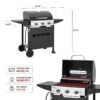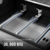– 2.Consistent & Even Heat: With an output of 30,000 BTU in total, three stainless steel burners deliver consistent and even heat across the grilling area. Porcelain-enameled flame tamer provides even heat distribution.