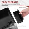 – 8.Easy Cleanup: Minimize the mess and simplify the maintenance after very cooking session whether you are using the grill or griddle side with the removable grease cups on each side collecting excess grease and residue.