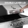 – 2.Stainless Steel Burners: Featuring 4 stainless steel burners generating 34,000 BTU, each can be independently controlled for management of cooking temperatures across different zones on the grill surface.