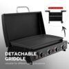 – 1.Outdoor Versatility: This griddle adapts effortlessly to any outdoor setting, shifting from a stand grill to a tabletop grill when removed from the cart, offering flexible cooking wherever you want with ease and convenience.