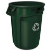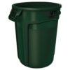 Waste receptacles, indoor Rubbermaid Commercial Products vented round brute container. Integrated cinches allow bags to be attached to handles without knots for faster liner changes while contoured base handles and rounded top handles make it easier for staff to lift and transport these receptacles in any facility. These trash cans are stackable to save space and provide an unbeatable value with their easy-to-clean, seamless construction, UV inhibitor and do not fade, warp, crack or crush. Waste Receptacle Type: Indoor All-Purpose Waste Bin; (s): Plastic; Application: Indoor All-Purpose Waste Disposal; Capacity (Volume): 32 gal. This rubbermaid round brute container, plastic, 32 gal, dark green is a great waste containers, plastic & fiberglass & lids item.