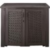Rubbermaid Weather Resistant Resin Chic Outdoor Patio Storage Cabinet, Black Oak