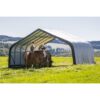 A Full 22 X 24 Storage Building Ready To Install Is The Perfect Bulk Storage Solution Or Equine Shelter. Built On A Professional Grade 2 3/8 In. Steel Frame, Every Frame Tube And Connector Goes Through A Proprietary 13 Step Steel Surface Prep Process For Maximum Durability. Premium Powder Coat Is Baked For An Even Finish That Will Not Chip, Peel, Rust Or Corrode. Advanced Engineered Ripstop Tough Woven Polyethylene Fabric Is Triple Layered, Heat Bonded For Ultimate 4 Season Performance. Hot Air Fused Seams Are 100% Waterproof. Easy To Set Up And Take Down As Needed With Slip Fit Connectors And Best In Class Swedged Tubing. Double Zippered Door Panels Allow Easy Access From Both Ends And Deliver Drive Through Options. Structure Requires No Building Permits In Most Cases. Check Local Ordinances Before Installation. Comes Ready To Install. Great For Horses, Hay, Bulk Storage, Equipment And Much More.