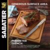 – Bamboo cutting board is gentle on knives, won t dull blades, and has trenches to catch excess juices and finger grooves for easy handling