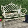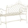 Designed to recall the benches in Paris charming Place de Vosges, this outdoor metal bench is a classic. Finished in antique white, its delicate details lend character to the garden, patio or any outdoor living area. Perfect for afternoon daydreams.