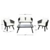 The classic barrel chair gets a streamlined modern update in this Belmi 4 Piece Outdoor Living Set. Featuring two arm chairs, a loveseat, and smooth glass top coffee table, the timeless silhouettes of Belmi s seating is transformed for today s outdoor entertaining with black rope details and plush beige cushions. Sit back, relax and make memories with family and friends throughout every season with this set.