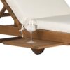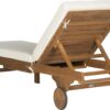 The Safavieh Newport Chaise Lounge Chair with Pull Out Side Table brings elegant comfort to any patio, deck, or even poolside. It boasts sturdy mango wood construction and a thick foam cushion that cradles you as you sit or lie down. Back wheels ensure mobility, and it also reclines flat so you can fully relax. This chaise lounge chair features a built-in pull out tray for you to keep a beverage, snack, book, or any other small item.
