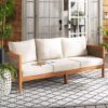 SAFAVIEH Theo Acacia Wood Outdoor Sofa, Natural/Taupe