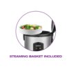– Steaming basket, measuring cup and Stir & Serve spatula included