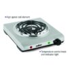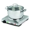 – Elegant stainless-steel housing with large 7.4 (188mm) diameter burner. Compatible with all types of cookware, including glass and aluminum.