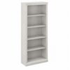 Enjoy the refined elegance of timeless traditional styling while showcasing your favorite books and decorations with the Bush Furniture Saratoga Tall 5 Shelf Bookcase. A perfect choice for virtually any office or private study, this vertical Bookcase features three adjustable shelves for flexible storage space and two fixed shelves for strength and stability. Each shelf supports up to 25 pounds, so you can organize your personal library and display larger items with confidence. Hardware is included to safely anchor the 30W x 13D x 72H tall bookshelf to a wall. The shelf’s classic appearance is enhanced by decorative top, base and side rail detailing. Find the perfect look to complement your work or living space with three distinct finish options: Linen White Oak, Modern Gray and Harvest Cherry. This Tall Bookcase has been tested to meet ANSI/BIFMA quality standards for safety and performance. Complete your traditional workspace with a Saratoga Executive Desk, L Shaped Desk, Lateral File Cabinet and Office Chair (coordinating items sold separately).