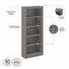 - Product Dimensions: 5 Shelf Bookcase: 29.88″W x 12.60″D x 71.65″H