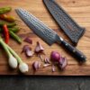Steeped in Japanese tradition, the stunning look and refined style of Sasaki cutlery is the result of a 60-day process that is intensively implemented and overseen. Only premium materials are used in creating each knife. The blade is precision forged from a single 67-layered Damascus high-carbon stainless steel piece with a cutting core made of Japanese AUS-10 super steel.