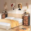 Satifur 5-Drawer Nightstand,Tall Fabric Dresser Storage End Table,Rustic Brown: