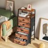 Satifur 5-Drawer Nightstand,Tall Fabric Dresser Storage End Table,Rustic Brown