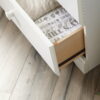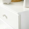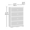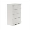 Once upon a time, your childs bedroom was dreary and dull, but you discovered the Storybook collection 4-drawer chest and defeated the drab design. This bedroom dresser features four spacious drawers with plenty of room for storing little princess capes and cloaks, with ample room on the spacious surface to display your favorite decorative items, a lamp, or nightlight. A delicate, scalloped trim on the base adds a whimsical flair to this bedroom chest of drawers along with solid wood knobs so little hands can easily open the drawers. Tall and narrow, it will fit in almost any space in your child’s room or play area. This 4-drawer dresser puts convenience first with the easy glide drawers, and each drawer includes metal runners and safety stops. Not only is this dresser with drawers spatially versatile, but it also features a delicate, Soft White finish that easily blends in with most any decor, making it the fairytale solution for all your storage needs.