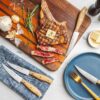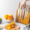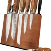 Family roots and memories are forged in the kitchen. Crafted from 100% natural Acacia Wood and fully forged, ultra-sharp German Stainless Steel, this modern twist on a traditional design will surely deliver for generations to come. Engineered for ultimate comfort and performance, our knives include a patented Schmidt Brothers Curve – giving you a comfortable grip, reduced slippage, and ultimate ease of use. Our universal, magnetic storage block will save space on your counter while adding a beautiful conversation piece! The perfect Kitchen Knife Set.