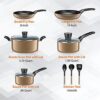 SereneLife 11 Piece Pots and Pans Non Stick Kitchenware Cookware Set, Gold