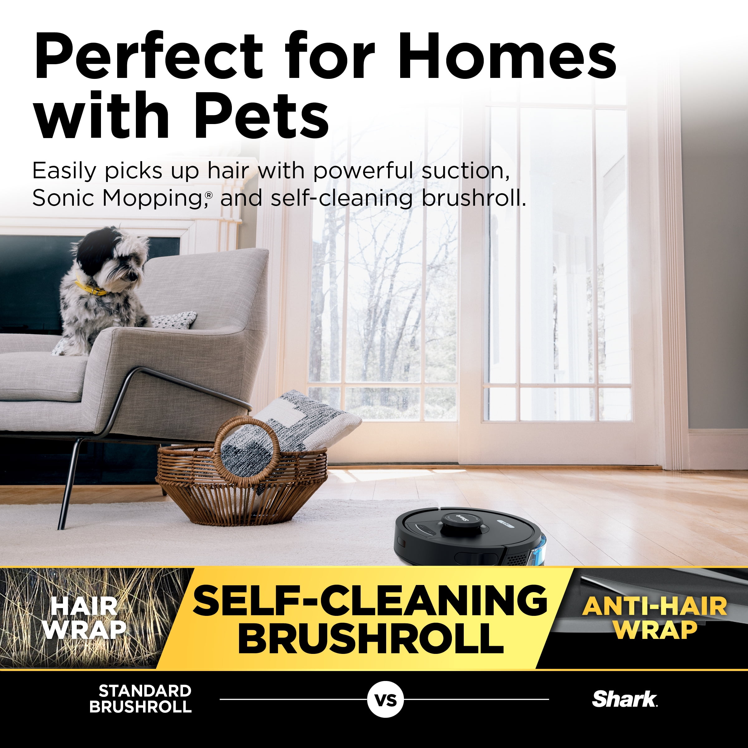 - PERFECT FOR HOMES WITH PETS: With powerful suction, Sonic Mopping, and Sharks self cleaning brushroll, the robot picks up pet hair and eliminates stuck on pet messes with ease.
