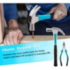 The Shawty 100pcs tool set includes needle nose pliers, electrical tape, vise, adjustable wrench, ratchet handle, 4 small screwdrivers, Phillips screwdriver, slotted screwdriver, hardware parts box. Screws, tape claw measureham hexagon wrench, pump pliers, utility knife, digital display pen, saw, 10* bits, 5* blades.