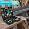 The tool set is made of high-quality alloy steel and CR-V chrome vanadium steel, chrome-plated for corrosion resistance, TPR rubber handle, non-slip, sweat-proof, durable; the tool hand saw is made of aluminum alloy, coated with Anti-corrosion treatment, CR-V chrome vanadium steel saw blade, high strength, high bending, not easy to break.