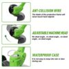 1. 20000RPM Super Power: The electric grass trimmer runs fast with no-load speed reaching 20000rpm. Strong power and high-quality pure copper motor enable you to finish trimming job with high efficiency.