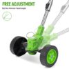 2. 2-in-1 Grass Trimmer: Simply push the wheeled grass trimmer to start the weeding job. If you remove the wheels, it is more flexible to clear off weeds at the corner or on the edge.