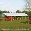 The ShelterLogic SuperMax 18 x 40 ft. Replacement Canopy Top is made from a strong, triple-layer, ripstop woven polyethylene fabric material. The Canopy top is white and easy to replace to extend the life of your canopy. Canopy replacement cover only, canopy frame not included.