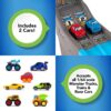 - Set accessories include two toddler sized race cars and racing decals that kids will love