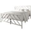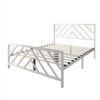 Indulge in a peaceful night’s sleep with this exceptional metal bed, crafted from high-quality metal and equipped with 12 sturdy slats that provide superior comfort and adaptability to various amounts of weight. With a geometric slatted design headboard and footboard, this metal bed exudes a modern and stylish appeal that will add an elegant touch to your bedroom decor. The ample storage space beneath the bed ensures that your bedroom stays tidy and organized while making it incredibly easy to clean under the bed. In addition, the bed comes with extra center solid wood legs that provide added support, enabling it to sustain heavier weights without causing any damage to the frame. To ensure longevity, the metal bed is finished with a surface powder coat that effectively prevents rusting and requires minimal maintenance and keeping it looking as good as new for a long time to come. The bed ships in one box, making it a hassle-free purchase. Box spring is not require for this metal bed frame. Available in classic shades of Black, White, and Brown, this metal bed is available in a range of sizes, including Twin, Full, Queen, and King, offers a range of options to suit your personal taste and room size. So, create a cozy and stylish bedroom atmosphere with this impressive metal bed, and enjoy a peaceful night’s sleep like never before!