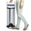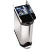 The simplehuman 40 liter / 10.6 gallon dual compartment butterfly kitchen step trash can has an innovative stainless steel butterfly lid design that opens from the center for maximum clearance under low countertops. It has two inner buckets and a slim, space-efficient shape that make it easy to do all your trash and recycling in one place. The strong steel pedal is designed to last, and our patented lid shox technology ensures a smooth, silent close every time.