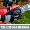 – TOOL-LESS CHAIN TENSIONING – Adjust the chain on this cordless saw with a convenient dial on the side of the tool.