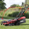 Get industry-leading performance and the power of gas in a cordless mower powered by PWRCORE 20 lithium technology. The digital, brushless motor combined with two PWRCORE 20 4.0Ah lithium batteries provides unbelievable power and cutting performance. You ll have control from start to finish with a push-button start, while the single-lever height adjustment delivers 6 different cutting heights for your desired grass length. The two 4.0Ah PWRCORE 20 Lithium-Ion batteries charge 100% in less than 100-minutes, while delivering 40V performance and allowing for universal battery use across all your SKIL PWRCORE 20 devices. When the task is complete, the telescoping handle folds down completely allowing for vertical storage. This 18-inch cordless lawn mower kit includes two 4.0Ah PWRCORE 20 lithium batteries for maximum run time, and a dual port charger.The included batteries and dual port charger are compatible with all SKIL tools in the PWRCORE 20 family.