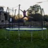 Your kids will be jumping long after the sun sets on the Skywalker Trampolines 12′ Round Trampoline with Lighted Spring Pad! Our uniquely designed LED lighted spring pad will illuminate the jumping surface, creating a whole new jumping environment! The LED lights are looped through two-thirds of the inside circumference of the vinyl-coated spring pad. Our patented no-gap enclosure system interlocks the jump mat and enclosure net at each spring, eliminating dangerous gaps and giving parents peace of mind. The Skywalker Trampolines 12′ Round Trampoline with Lighted Spring Pad is the perfect way to create life-long memories.