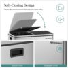 – [Strong yet Soft] The rigid stainless steel body of this garbage can withstands long-lasting use; the soft-close lid ensures the environment remains peaceful, with no loud slamming to be heard