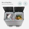 SONGMICS 16 Gallon Dual Trash Can Rubbish Bin and 15 Trash Bags, Metal, Silver and Black