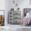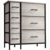 – 7 Drawer Fabric Dresser The sturdy and durable steel frame offers stable support for your belongings. This dresser is perfect for storing light items such as socks and underwear as well as heavier items including jeans and jackets.
